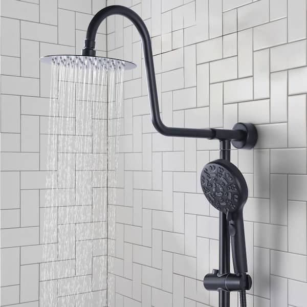 Rustic 7-Spray Round High Pressure Wall Bar Shower Kit with Handheld Shower Head in Matte Black
