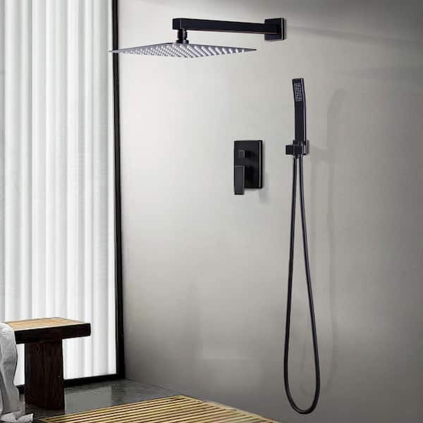 Single Handle 2-Spray Shower Faucet 1.8 GPM with 10 in. Square Shower Head and Handheld Shower in Oil Rubbed Bronze