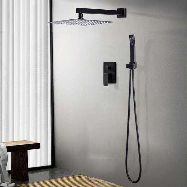 Single Handle 2-Spray Shower Faucet 1.8 GPM with 12 in. Square Shower Head and Handheld Shower in Oil Rubbed Bronze