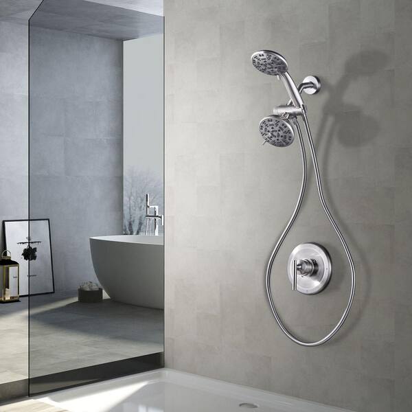 Single Handle 7-Spray Double Shower Heads Shower Faucet 1.8 GPM with Pressure Balance Valve in Brushed Nickel