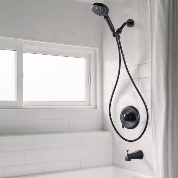 Single Handle Brass 7-Spray Shower Faucet 1.8 GPM with High Pressure Tub Spout in Matte Black (Valve Included)