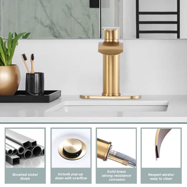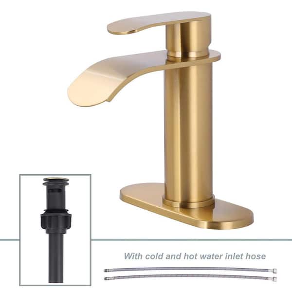 Single Handle Deck Mounted Waterfall Bathroom Faucet with Deck Plate and Pop-Up Drain Included in Gold