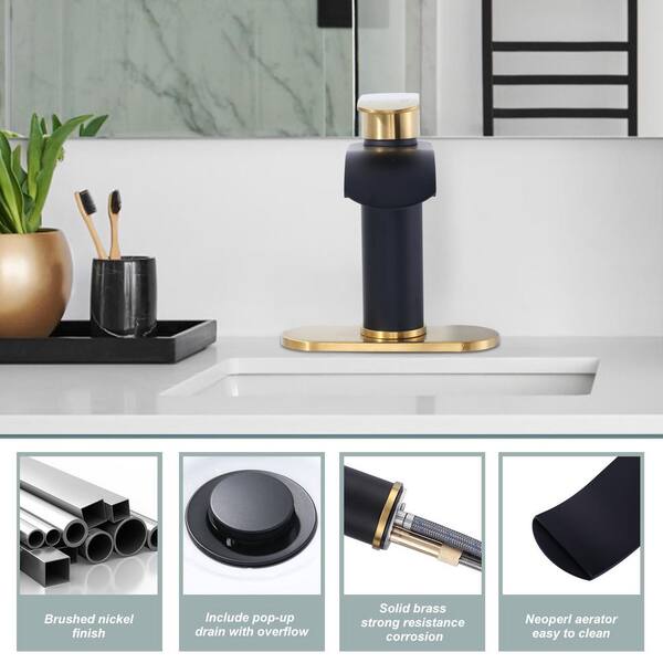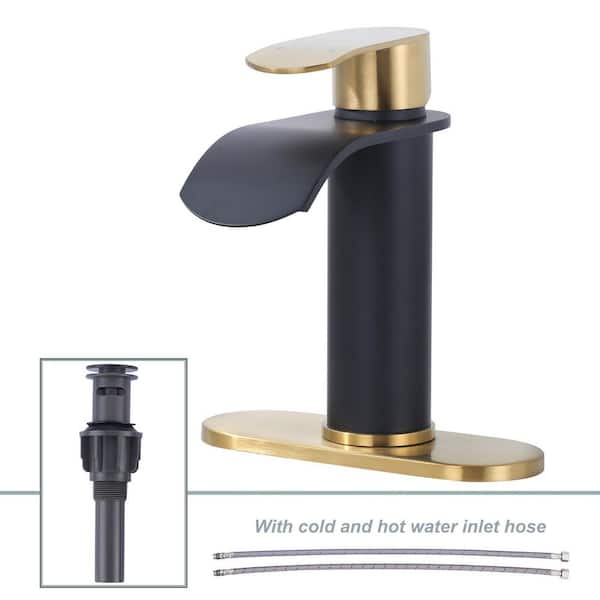 Single Handle Deck Mounted Waterfall Bathroom Faucet with Deck Plate and Pop-Up Drain Included in Gold and Black