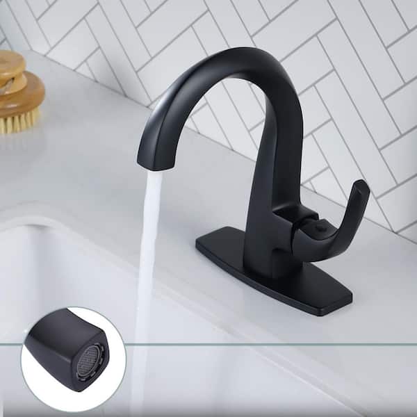 Single Handle High Arc Single Hole Bathroom Faucet with Deckplate Included and Drain Kit included in Matte Black