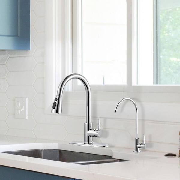 Single Handle Pull Down Sprayer Kitchen Faucet and Beverage Faucet in Chrome