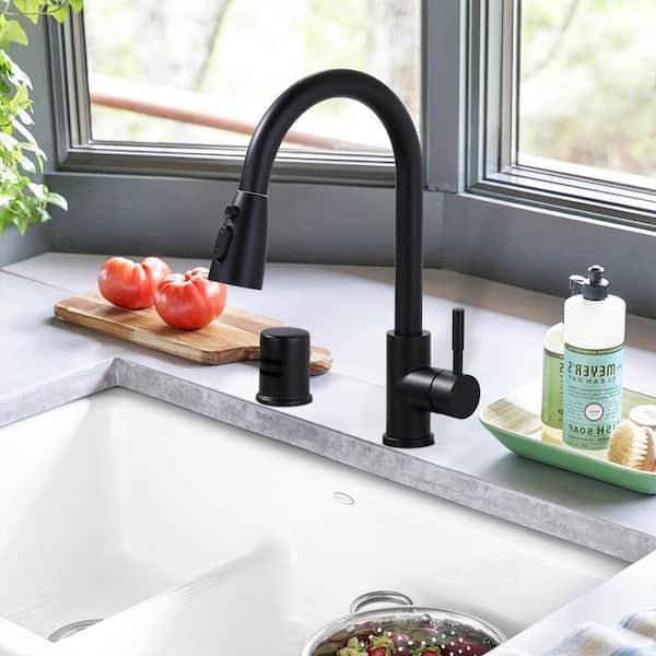Single Handle Pull Down Sprayer Kitchen Faucet with Air Gap Kit in Matte Black