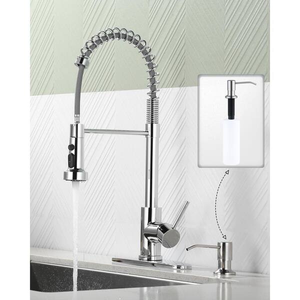 Single Handle Pull Down Sprayer Kitchen Faucet with Soap Dispenser, Pull Out Spray Wand in Chrome