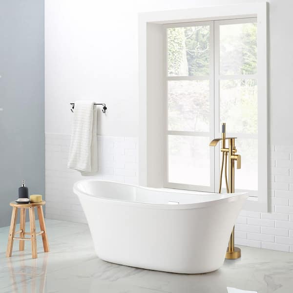 Single-Handle Waterfall Freestanding Tub Faucet with Hand Shower and Diverter in. Gold