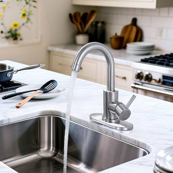 Sleek Stainless Steel Bar Faucet with 360° Swivel Spout in Brushed Nickel