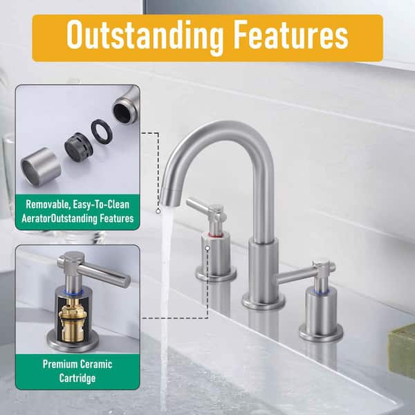 Slim Deck Mount Double Handle High Arc 8 in. Widespread Bathroom Faucet in Brushed Nickel