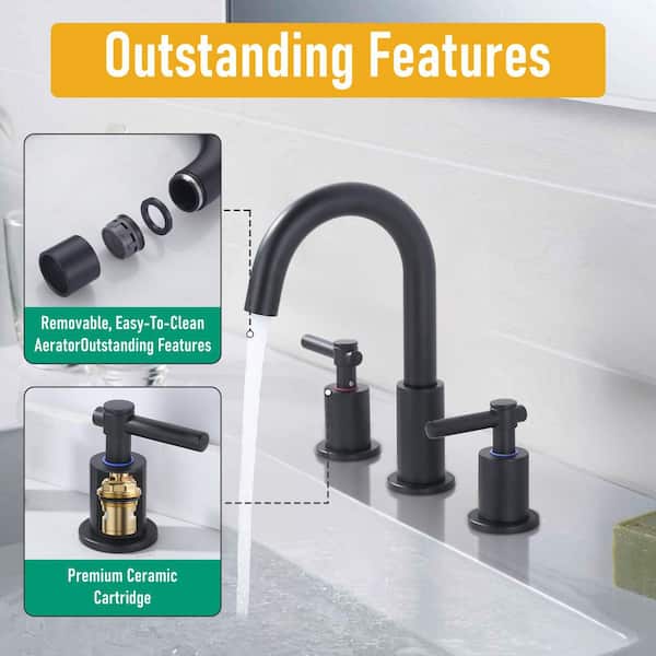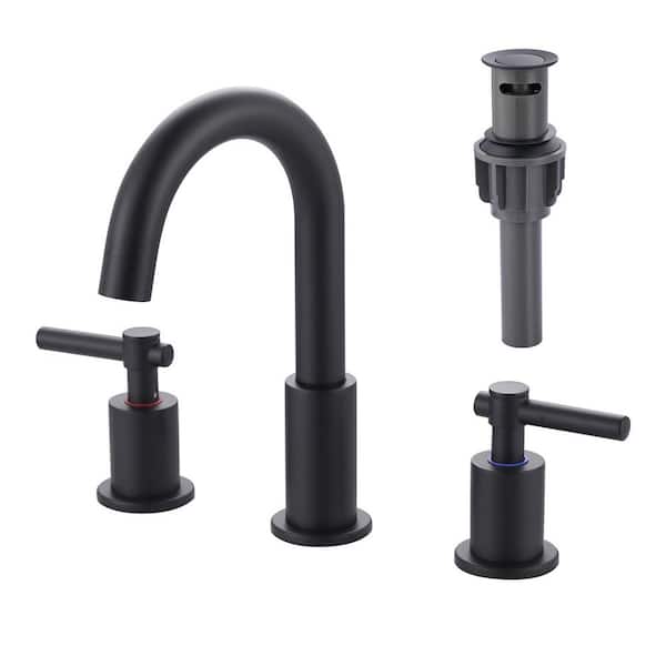 Slim Deck Mount Double Handle High Arc 8 in. Widespread Bathroom Faucet in Matte Black