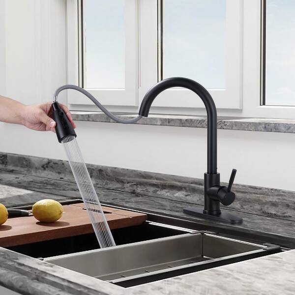 Touchless Single Handle Pull Down Sprayer Kitchen Faucet with Touchless Sensor in Matte Black