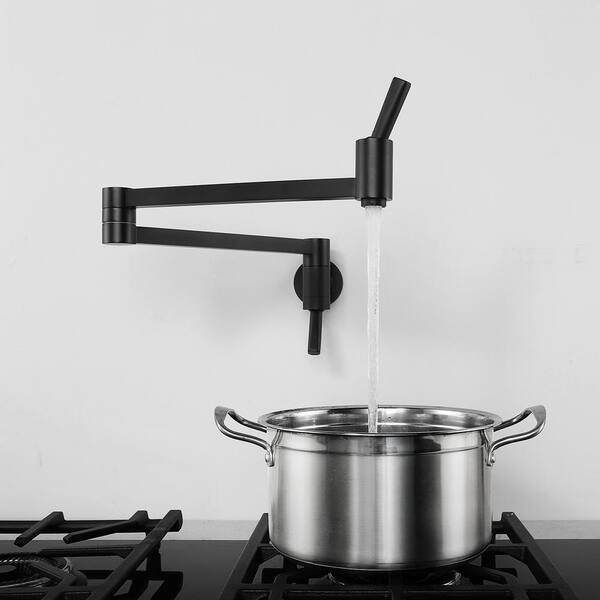 Wall Mounted Pot Filler Faucet with Stretchable Double Joint Swing Arm in Matte Black
