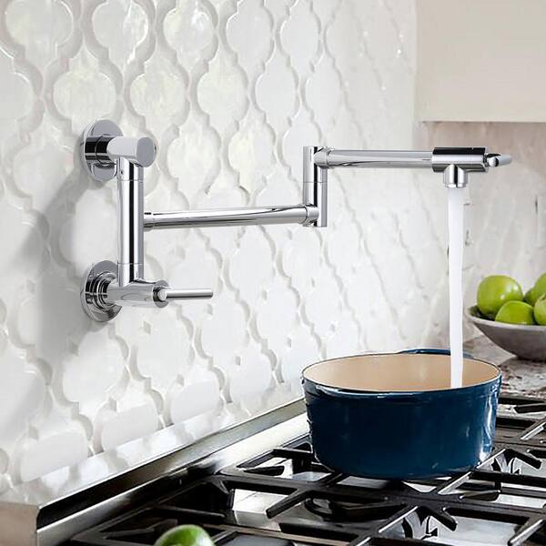 Wall Mounted Pot Filler with 2-Handles Kitchen Faucet in Chrome