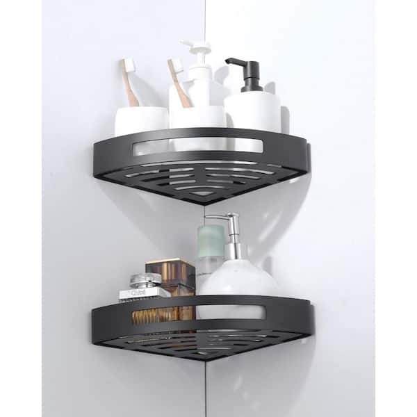 Wall Mounted Triangular Corner Shower Caddy in Matte Black (2-Pieces)