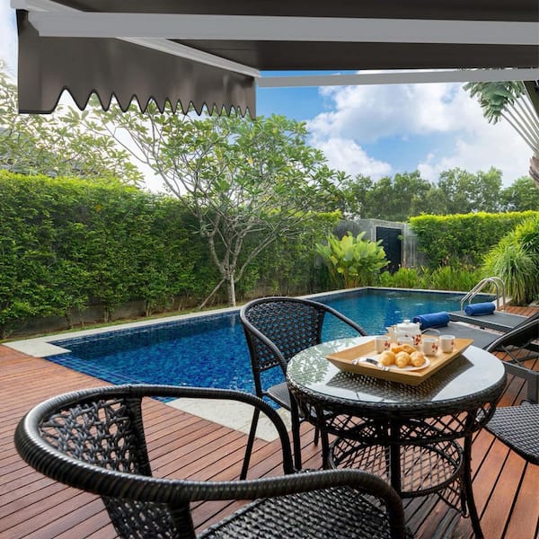 12 ft. Caribbean Polyester Manual Retractable Patio Awning 10 ft. Projection in Ivory