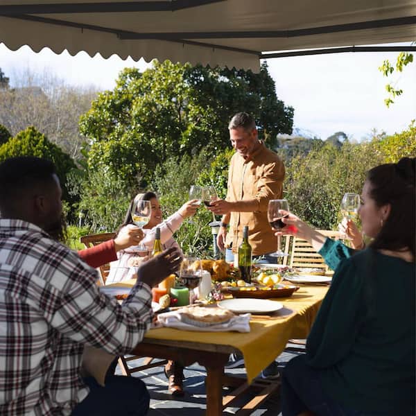 20 ft. Moroccan Polyester Motorized Patio Awning Semi Cassette LED Luxury 120 in. Projection in Sand