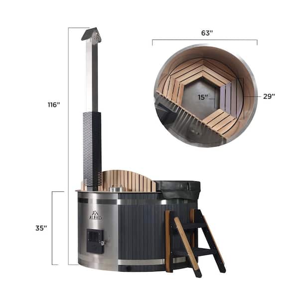 4-Person Stainless Steel 0-Jet Hot Tub and Cold Plunge Tub - Wood-Fired Heater