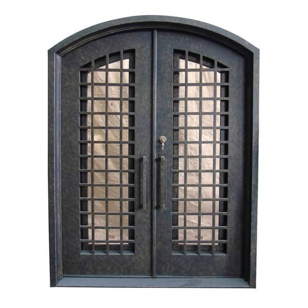 62 in. x 81 in. Rustic Bronze Right-Hand Inswing 2-Lite Clear Iron Double Prehung Front Door