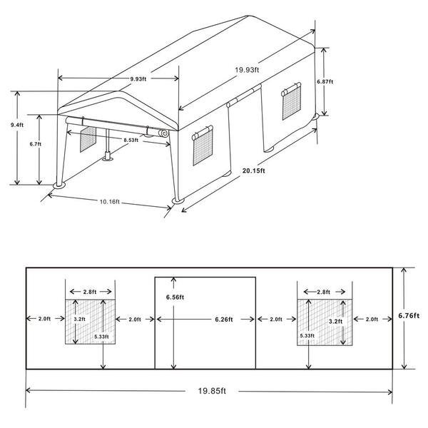 Assembled Dimensions: 10 ft. x 20 ft. x 9 ft. Heavy Duty Beige Outdoor Canopy Tent Windows and Side Doors Carport