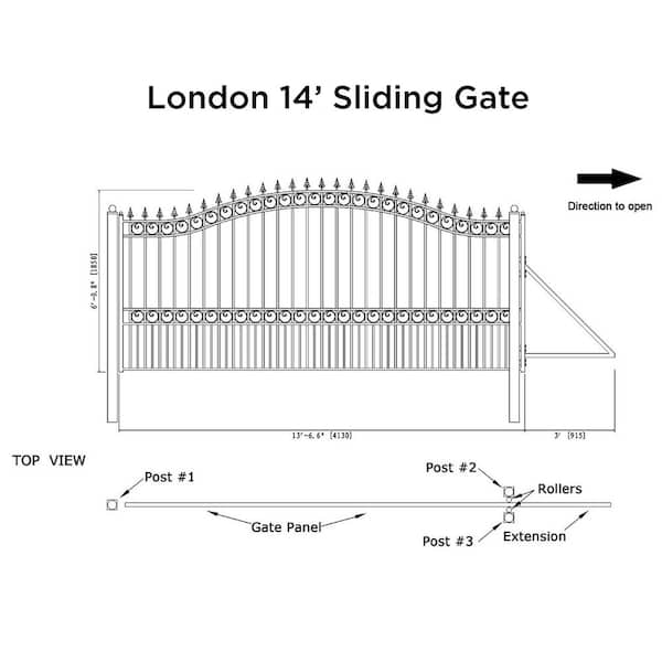 London Style 14 ft. x 6 ft. Black Steel Single Slide Driveway Fence Gate