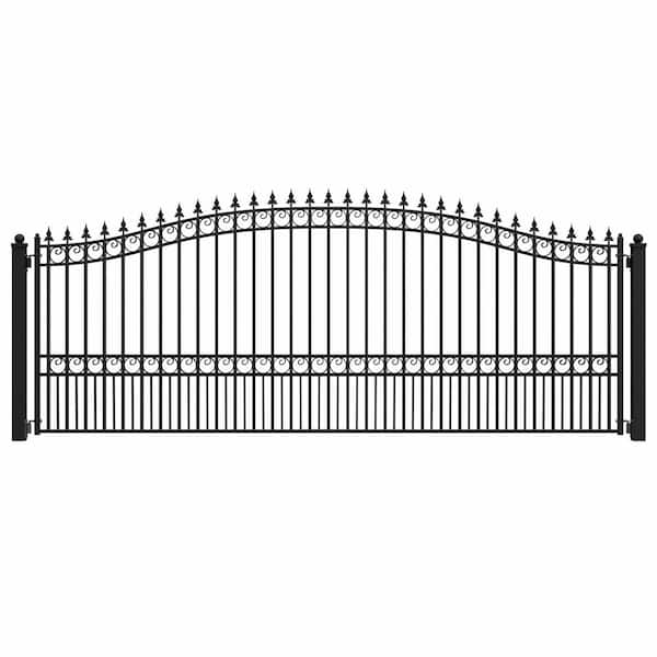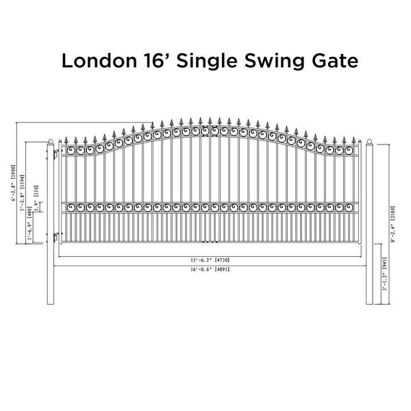 London Style 16 ft. x 6 ft. Black Steel Single Swing Driveway Fence Gate