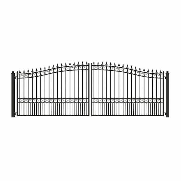 London Style 18 ft. x 6 ft. Black Steel Dual Driveway Fence Gate