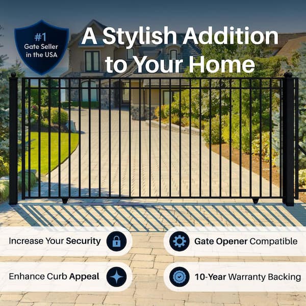 Madrid Style 14 ft. x 6 ft. Black Steel Single Slide Driveway Fence Gate