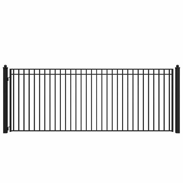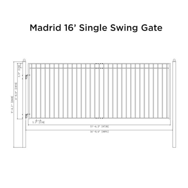 Madrid Style 16 ft. x 6 ft. Black Steel Single Swing Driveway Fence Gate