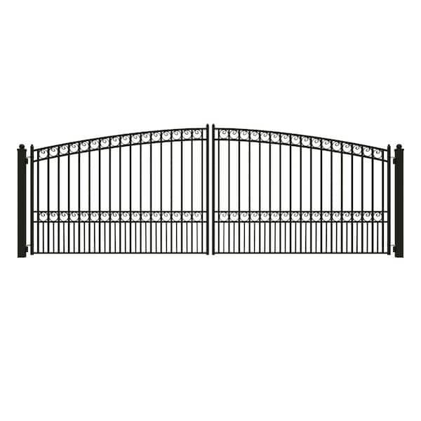 Paris Style 18 ft. x 6 ft. Black Steel Dual Driveway Fence Gate