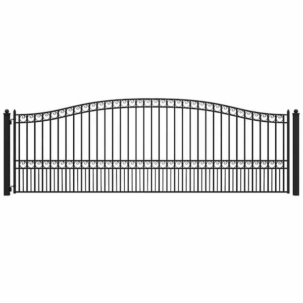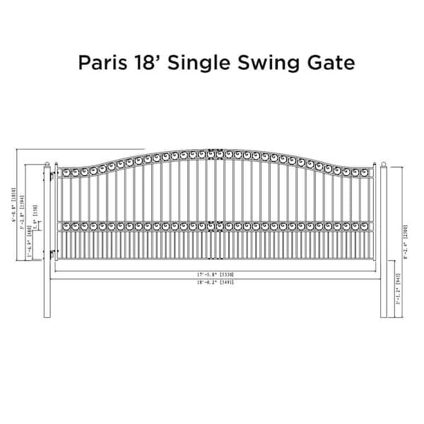 Paris Style 18 ft. x 6 ft. Black Steel Single Swing Driveway Fence Gate