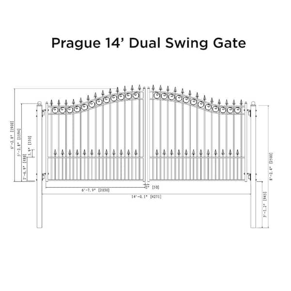 Prague Style 14 ft. x 6 ft. Black Steel Dual Driveway Fence Gate