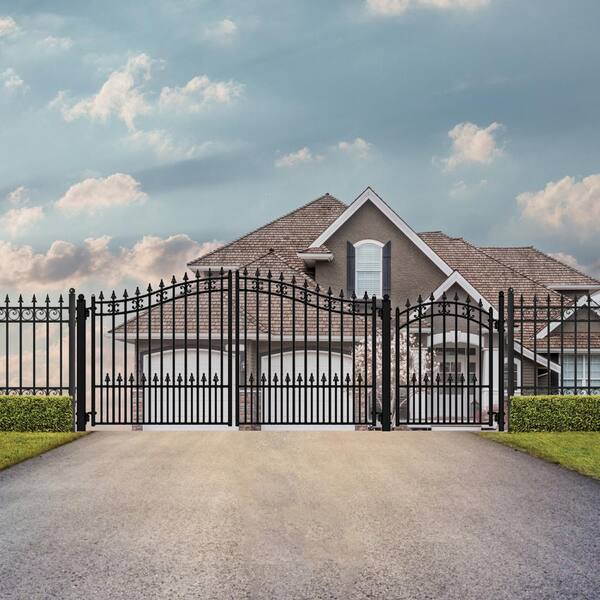 St Louis Style 14 ft. x 6 ft. with Pedestrian Gate Black Steel Swing Dual Driveway Fence Gate
