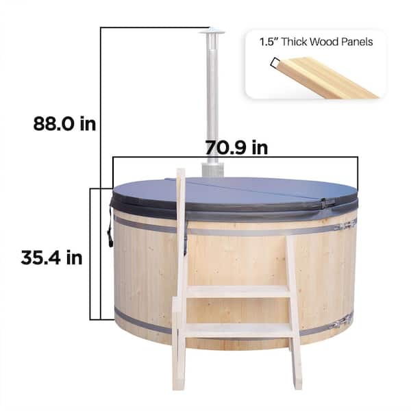 Wood Fired 4-Person to 5-Person 0-jet Hot Tub and Ice Bath with External Stove Pine