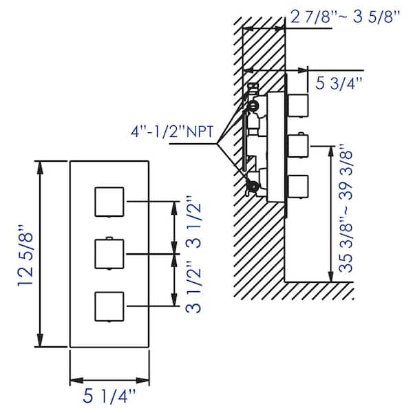 AB2701-PC 3-Handle Shower Mixer Valve with Sleek Modern Design in Polished Chrome