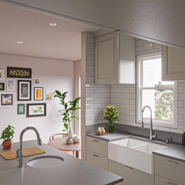 Step-Rim Gray Matte Fireclay 33 in. Double Bowl Farmhouse Apron Front Workstation Kitchen Sink with Accessories