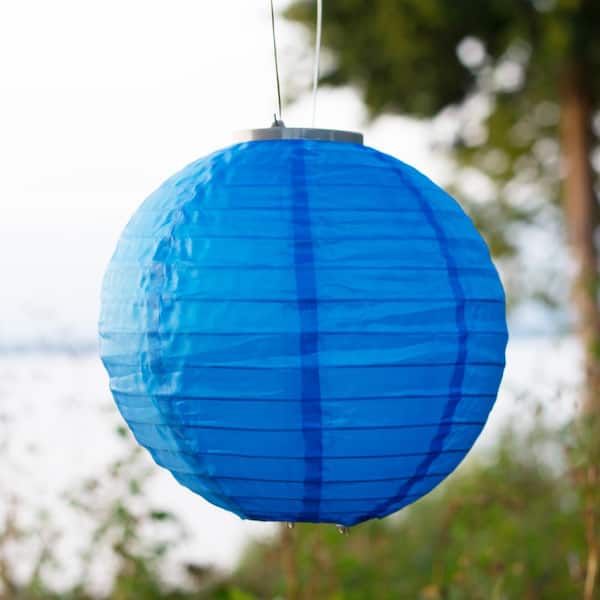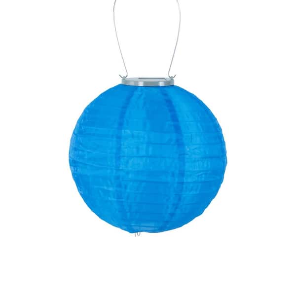 Glow 10 in. Blue Round Integrated LED Hanging Outdoor Nylon Solar Lantern