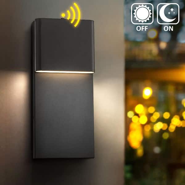 1-Light H13 in Modern Matte Black Simple Square 10W Integrated LED Outdoor Wall Sconce with Dusk to Dawn Sensor