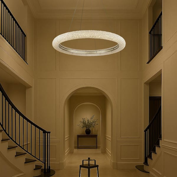 41 in. Modern Soft Gold Round LED Intergrated Crystal Chandelier Dimmable Glam Halo Hanging Light For Living Room