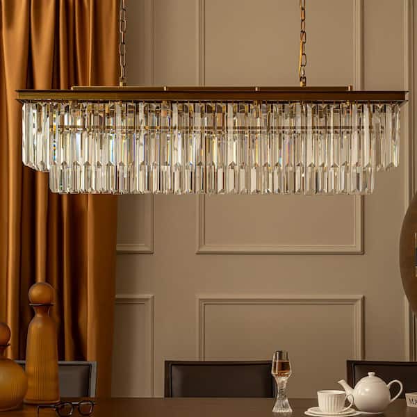 49.2in 12-Light Modern Crystal Antique Gold Linear Rectangular Chandelier with Crystal for Kitchen Island Dining Room