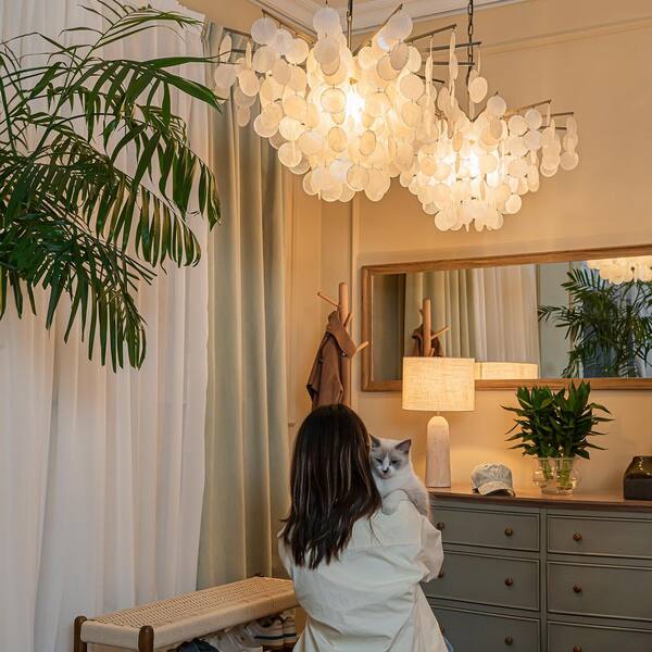 6-Light 29.5 in. Cone Shape 5-Tiers Coastal Capiz Shells Chandelier With Antique Gold Metal