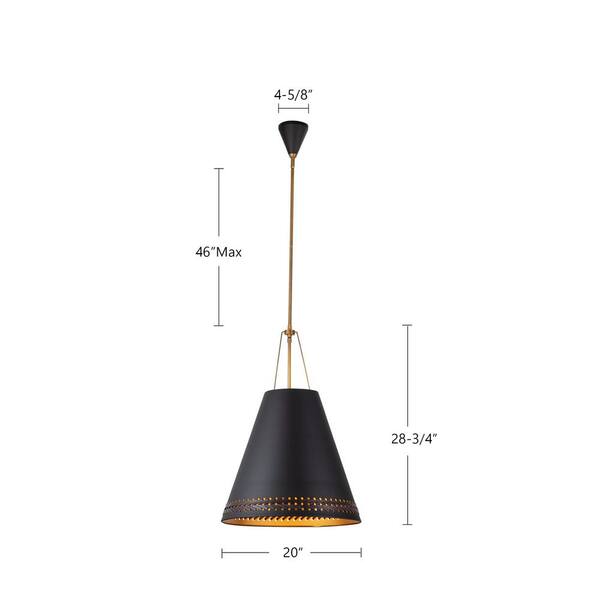 Brickell 20 in. 3 Light 60-Watt Matte Black/Hazelnut Leather Pendant Light