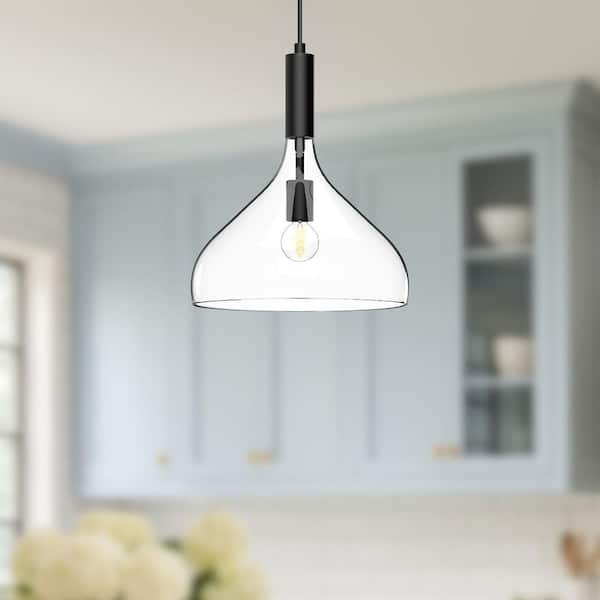 Belleview 12 in. 1 Light 60-Watt Clear Glass/Matte Black Pendant Light