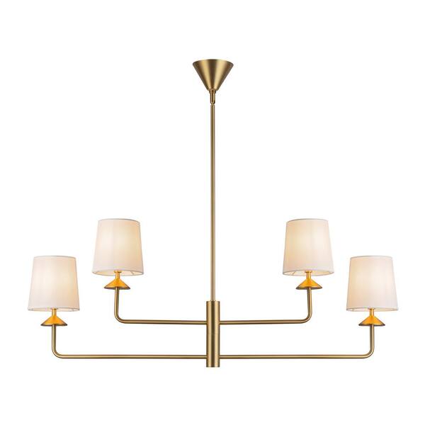 Bridgette 45 in. 4 Light 60-Watt Brushed Gold/White Linen Chandelier