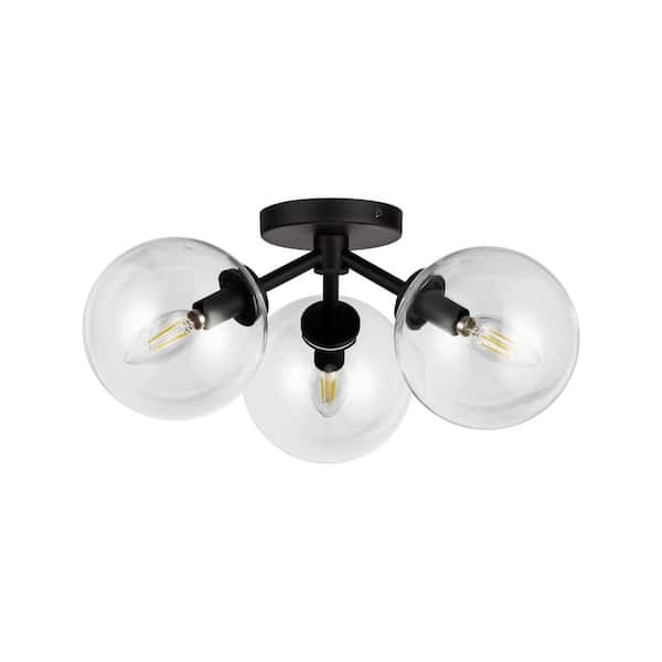 Cassia 15 in. 3 Light 40-Watt Matte Black/Clear Glass Semi-Flush Mount