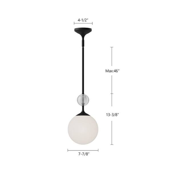 Celia 8 in. 1 Light 60-Watt Matte Black/Opal Glass Pendant Light