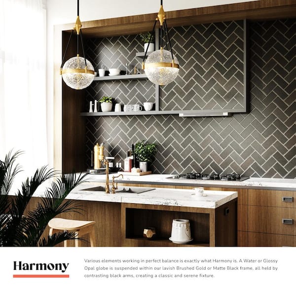 Harmony 14 in. 3 Light 60-Watt Brushed Gold/Glossy Opal Glass Pendant Light
