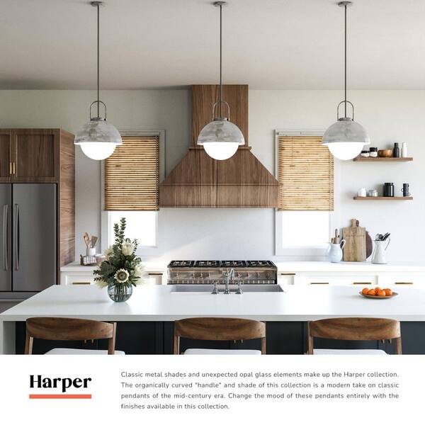 Harper 16 in. 1 Light 60-Watt Steel Shade/Opal Matte Glass Pendant Light
