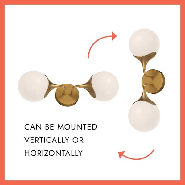 Nouveau 19-in 2 Light 40-Watt Aged Gold/Opal Matte Glass Vanity Light