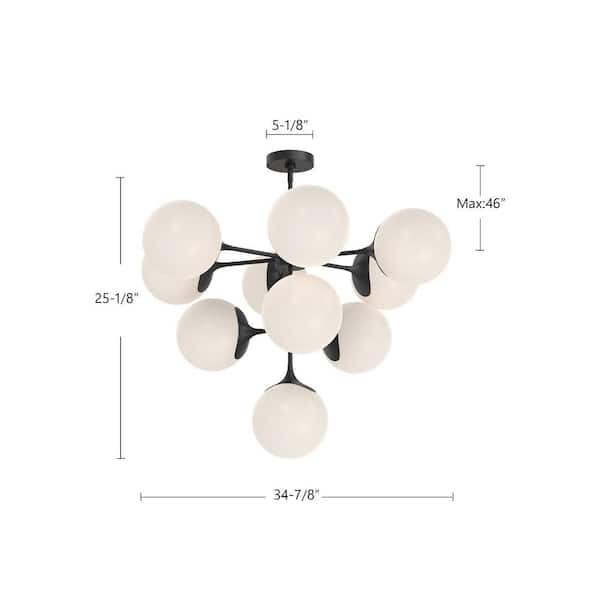 Nouveau 35 in. 10 Light 40-Watt Aged Gold/Opal Matte Glass Chandelier